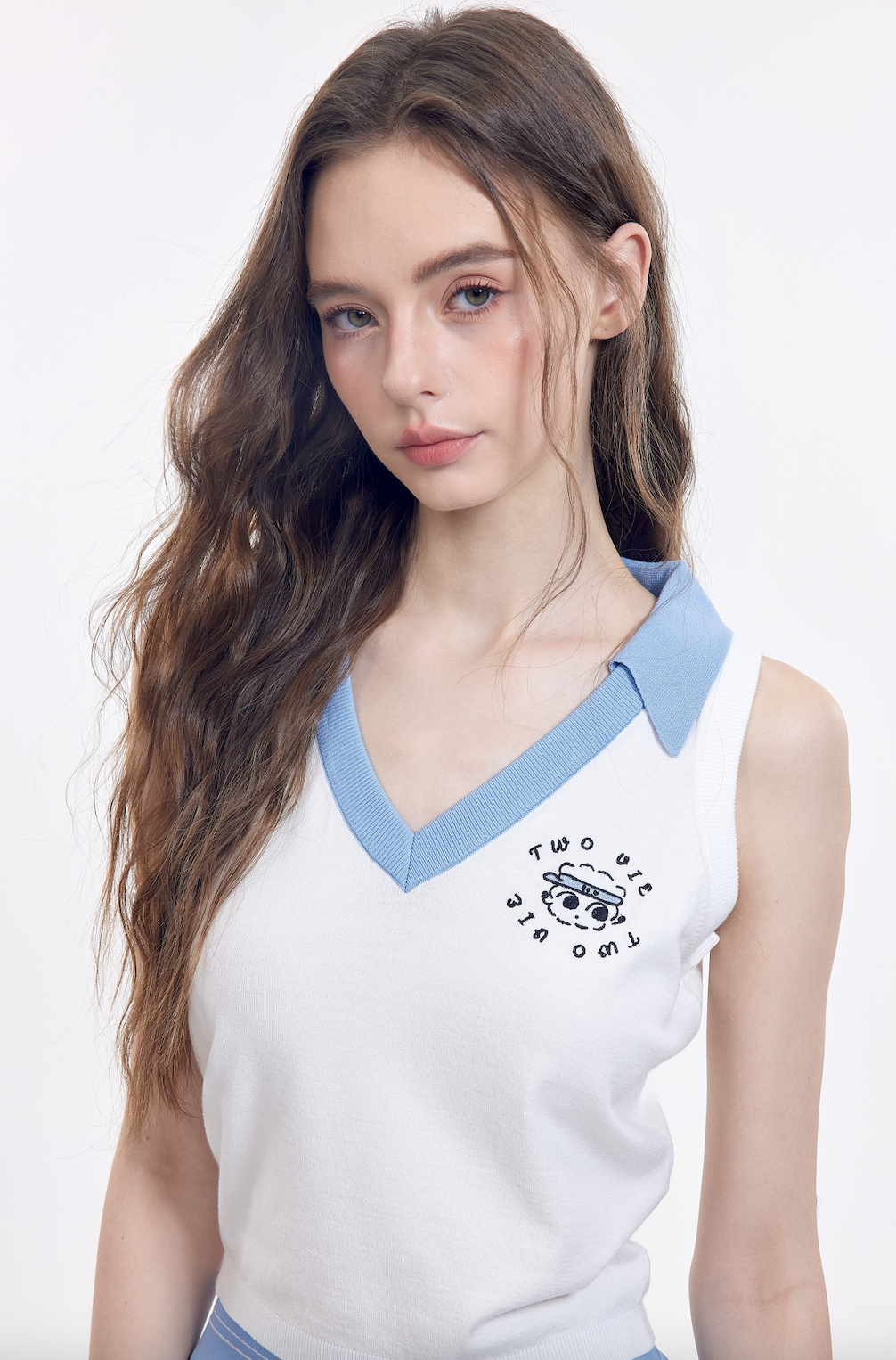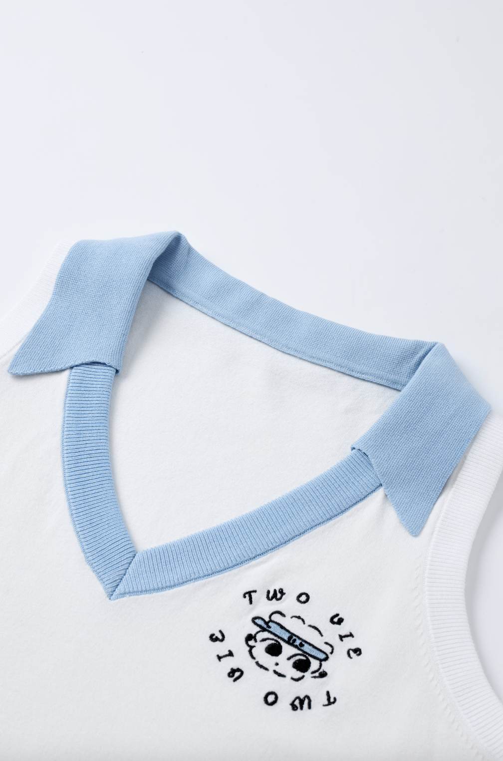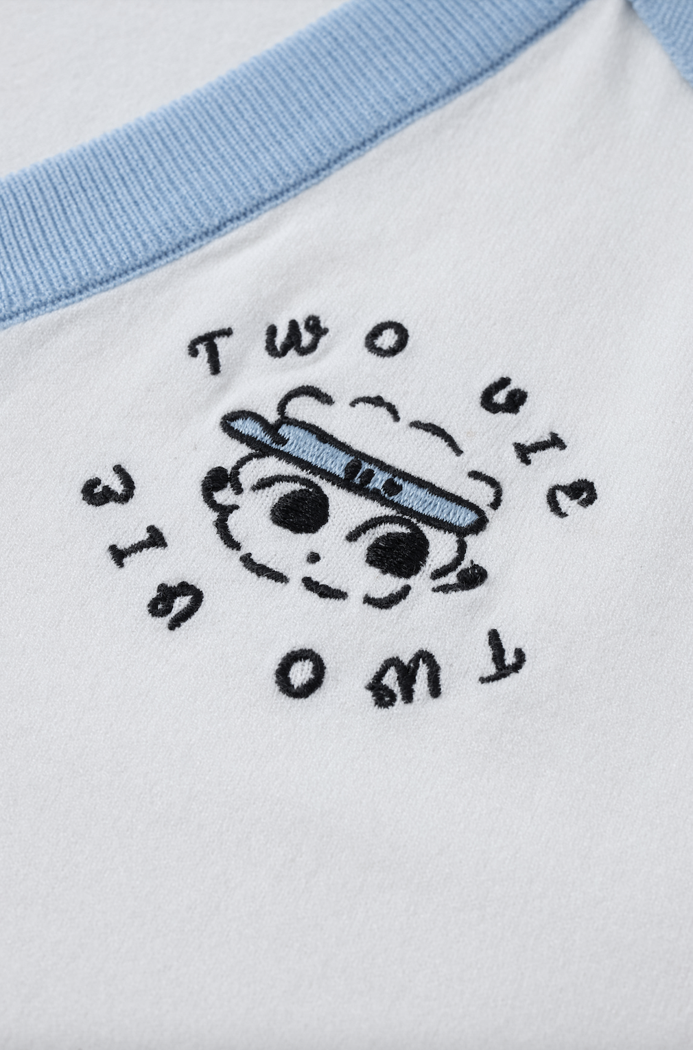 以品牌標誌性的藍色細節與精緻吉祥物刺繡